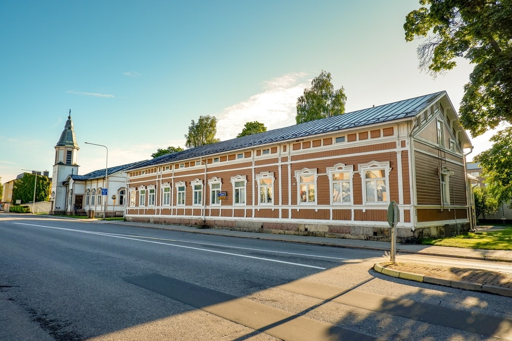Mitähän kirkon vieressä oleva ruskeavalkoinen rakennus pitää sisällään, liekö sekin seurakunnan tiloja?