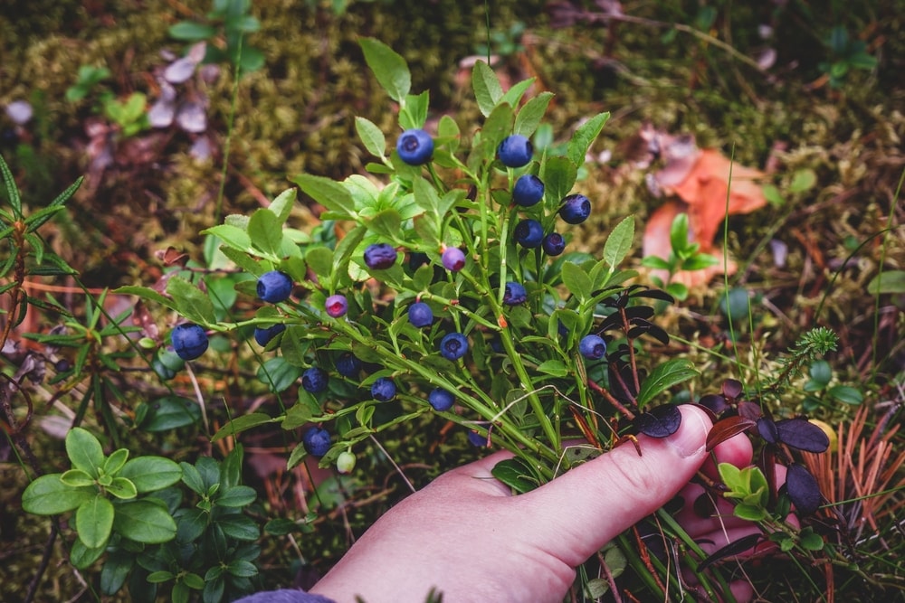 Paikoin varvut notkuivat marjaa. Suurin osa metsänpohjasta on puolukan peitossa, ja puolukoista ei ollut merkkiäkään vielä. Kun puolukat ovat kypsiä, pitää alkaa varoa rykimähuuruisia poroja. Vielä ei ole vaaraa niistä.