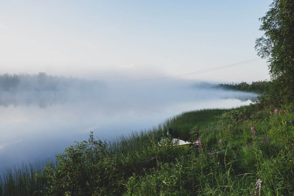 Yhtenä yönä heräsin aamuyöllä, ja joella oli aurinko juuri nousemassa. Ihana usva, nämä ovat näitä hetkiä joita voi vain heinä–elokuussa nähdä.