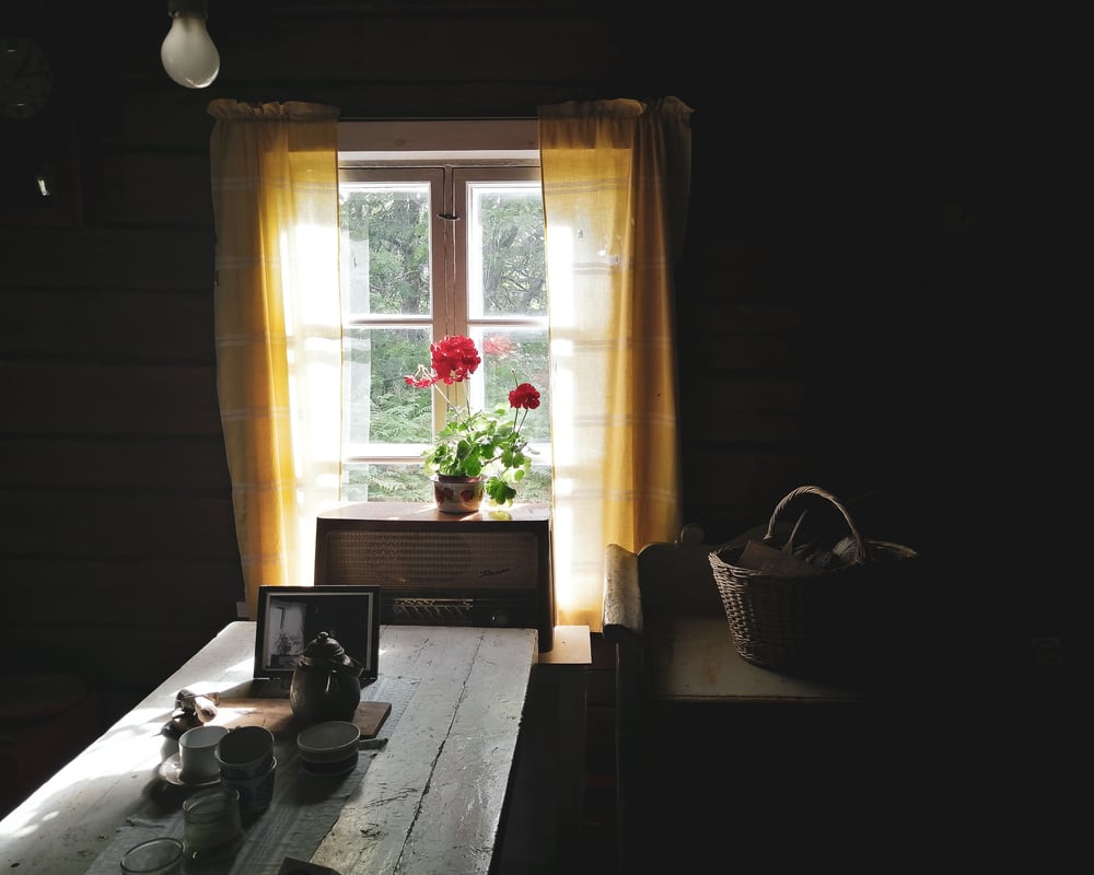 Menimme ensin ostamaan liput, ja joimme samalla tietenkin kahvit. Myyjä antoi meille esitteet ja kertoi, että alueella on nykyään kiertosuunta koronan vuoksi. Olen yleensä tehnyt kierroksen aivan päin vastoin, mutta nyt sitten lähdimmekin ensimmäiseksi tutustumaan Vanhaan Särestöön eli taiteilijan synnyinkotiin (yllä).