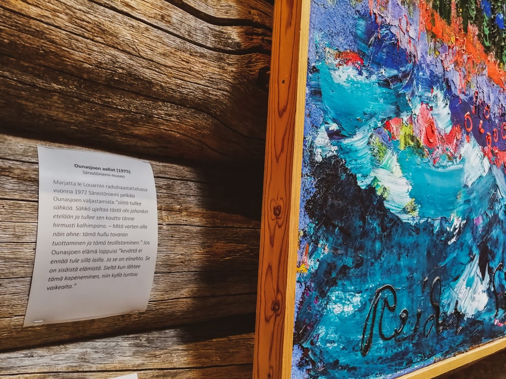Jälleen kerran esillä oli kattaus uskomattoman hienoja tauluja. Koronan vuoksi Särestöön ei keväällä päässyt, joten tämän näyttelyn näinkin nyt vasta ensimmäistä kertaa. Mukana oli tosin pari aiemmista näyttelyistä tuttua taulua, kuten Ounasjoen aallot.