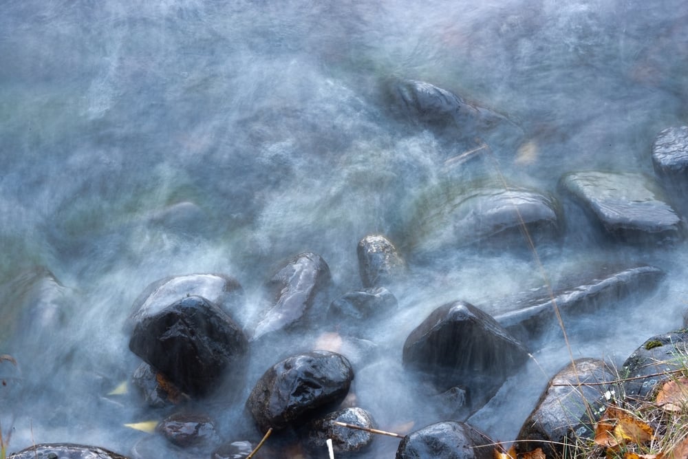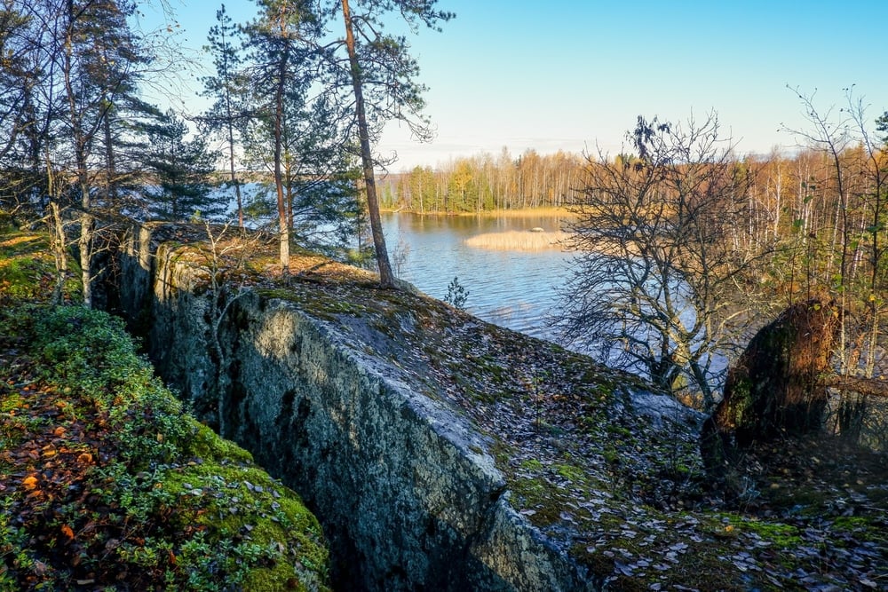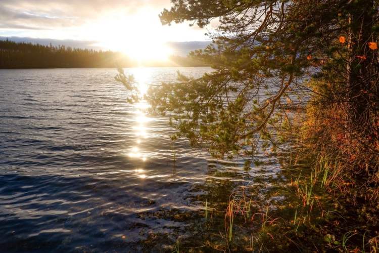 Järven aallot lotkuivat ihanasti kivikkoiseen rantaan, äänimaailma täytti pään yhdessä tuulen kanssa. Ruska oli siirtynyt puista pitkälti veteen lainehtimaan ennen talven tuloa.