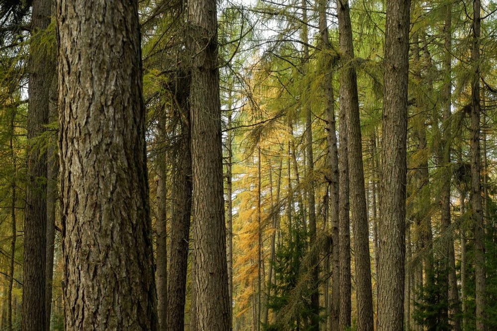 Metsä oli vaikuttava, en ole ennen nähnyt niin laajaa suurien lehtikuusien metsää. Paikassa oli jotain muinaista ja villiä, olisi ollut helppo kuvitella dinosauruksia, vaikkapa brachiosauruksia, samoilemassa siellä tai lentoliskoja nahistelemassa korkealla latvuksissa.