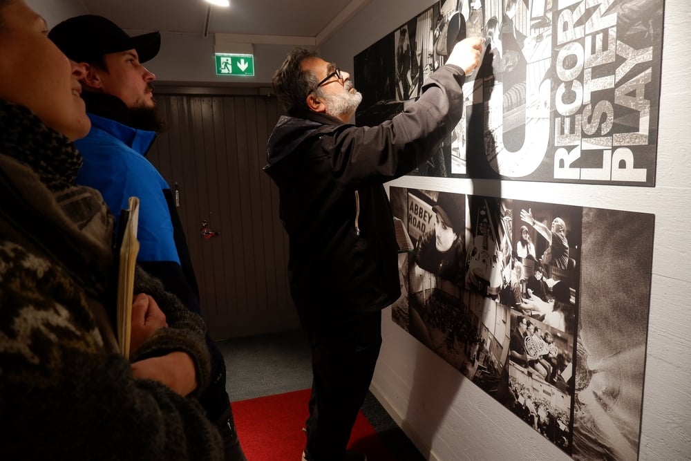 Kello lähestyi kahtatoista ja palailimme kohti näyttelyä. Tällä kertaa Plamen vei meidät näyttelyn alakertaan. Siellä oli soittimia ja yhtyeen kuvia mm. Röskön kesäleireiltä.