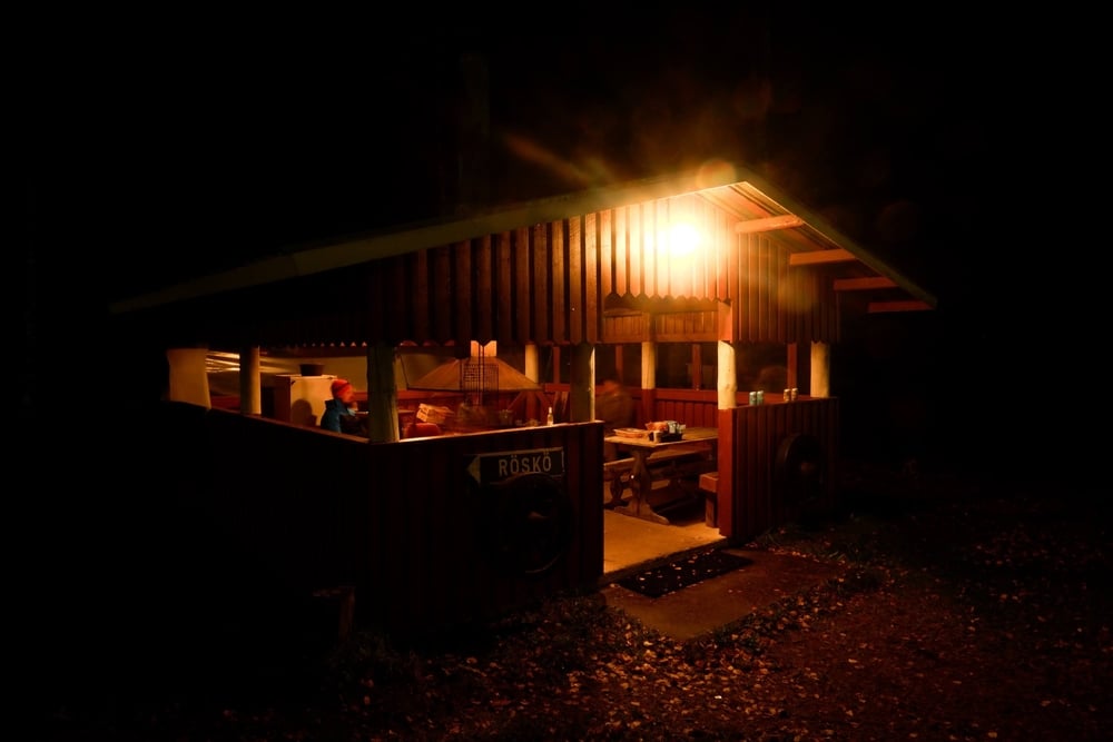 Ad Astran päätyttyä ja ajatusten palattua takaisin maan pinnalle kello läheni kuutta, ja aloimme palailla mitä kauneimman metsätien saattelemana autolle. Seuraavaksi suuntana oli Röskön leirikeskus, jossa viipyisimme kaksi yötä. Päärakennuksen ikkunoista loisti kotoisasti valo, kun saavuimme upealle järvenrantapaikalle. Rinne oli täynnä erilaisia, suloisen näköisiä mökkejä, ja rannalla terijoensalavat kasvoivat komeina kuten olimme dokumenteista nähneet. Meitä vastassa oli Hannu, joka esitteli paikan systeemit. Myös vanhempani saapuivat tänne asuntoautollaan, ja olikin tosi ihanaa saada viettää aikaa samalla reissulla myös heidän kanssaan ❤