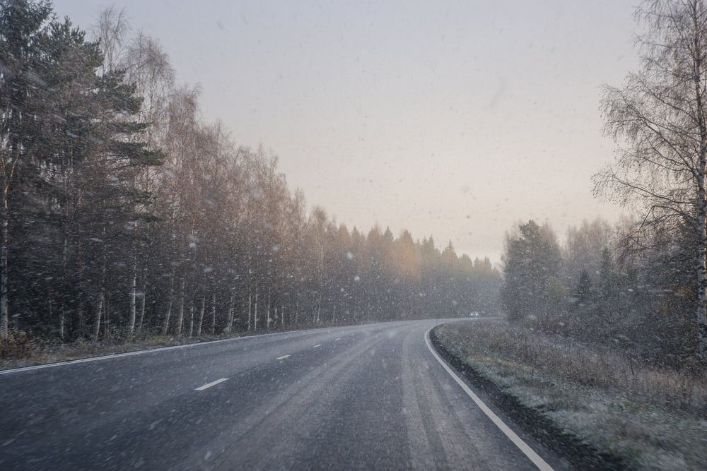 Melkein heti liikkeelle lähdettyämme alkoi sataa lunta.
