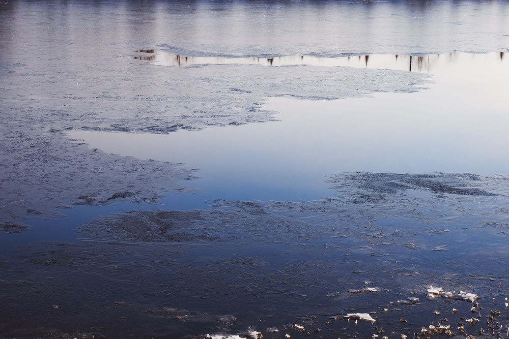 Joki meni yöllä jäähän. Aivan kuten viime vuonnakin, lumi tuli samaan aikaan ja joki jäätyi yhdessä yössä. Enää ei oikein pääse uimaan.