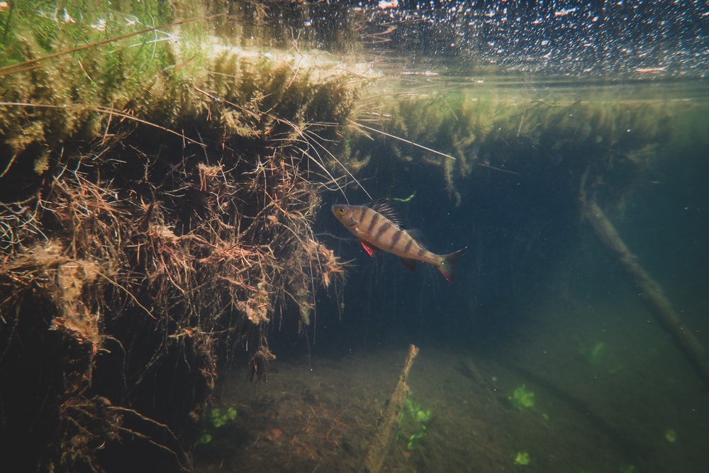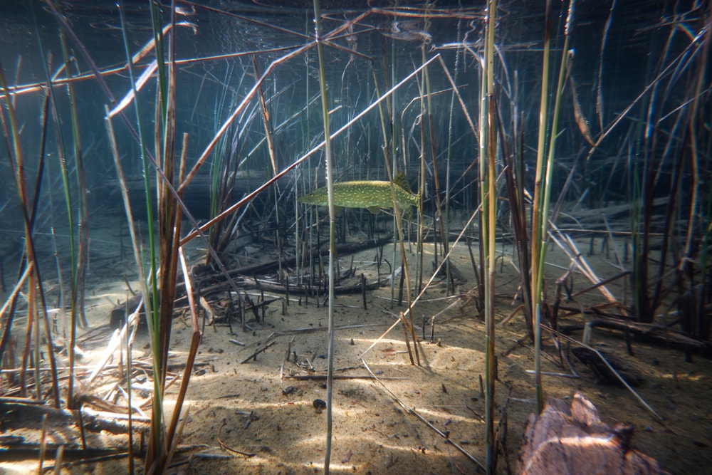 Hossassa kävin kaksi kertaa samassa järvessä, ja molemmilla kerroilla sain uida aivan valtavan ahvenparven kanssa. Kaloja oli arviolta parisataa, ja yksi niistä oli oikea jättiläinen (yllä). Ahvenet saartoivat minut ja nyppivät minua samaan aikaan kun minä ihailin näkymää ja otin kuvia. Ne hetket olivat epätodellisen hienoja. Erityisen ihanalta tuntui pieni vuorovaikutus kalojen kanssa – kun pölläytin kädellä pohjasta ilmoille pienen tomupilven, koko parvi saapui katsomaan ja tutkimaan, olisiko siinä jotain evästä.Mutta pienienkin kalojen kohtaaminen voi olla aivan vaikuttavaa. Yllä olevassa kuvassa on Ounasjoen mutuja. Maisema on kuin akvaariossa! Oli ihana kelliä Ounaksen lämpimässä ja rauhaisassa rantavedessä ja katsella kalojen eloa, kasvien hulmuntaa ja auringon liikkeitä aivan kuin aika olisi pysähtynyt.Joskus tilanteen vaikuttavuuden tekee se, että kaloja on vain yksi. Yllä oleva siika ui Enontekiön Raasikaltioilla. Tuli tunne, että olen koko järvessä kahdestaan tuon siian kanssa. Ja se oli aika hieno tunne. Järven vesi oli kirkasta, mutta järvi oli jo rannoiltaan aika syvä, joten pohjalle saakka ylsi vain hämyisä valo. Siika ui rauhakseen pohjaa pitkin hopeinen kylki välillä auringonsäteessä välkähtäen. Se toi mieleeni jonkin laiduntavan eläimen – järven pohjaa peitti niityn kaltainen kasvisto.Samalla tavoin kuin aiemmin siian, myös tämän ahvenen kanssa tunsin olevani yksin koko järvessä. Kala oli pitkään seuranani ja kruunasi reissuni, sillä olin ajanut Sodankylään saakka snorklaamaan, kun oli kaunis ja lämmin kesäpäivä. Kyseisessä lammessa on todella kuumottava tunnelma, sillä se on erittäin äkkisyvä, ja minä pelkään avaraa vettä. Ahvenen seura kevensi tunnelmaa enkä ehtinyt niin paljon mielikuvitella, mikä syvyyksien hirviö järven synkistä uumenista minua vaanii. Olin muuten yllä olevaan kuvaan niin tyytyväinen, etten olisi ikinä uskonut saavani yhtään parempaa kuvaa. No, Hossa muutti sitten myöhemmin asioita.Tämä yllä oleva kuva on yksi suosikkikuvistani aivan kaikista kuvista, joita olen elämässäni ottanut. Kuva on Hossan Öllöristä, enkä voisi olla siihen yhtään tyytyväisempi. Olin lopultakin oppinut puljaamaan tarkennuksen ja muiden kameran säätöjen kanssa – kas kun veden alla niihin ei saa koskettua, joten asetukset on osattava laittaa kohdilleen jo ennen veteen menoa. Aurinko paistoi ja Öllöri oli kristallinkirkas sekä täynnä kaloja, minkä lisäksi olin Hossassa mieheni sekä vanhempieni kanssa. Kaikki oli melko lailla täydellistä.Olen saanut hauesta lähempääkin kuvia, mutta tämä yllä oleva lukeutuu suosikkeihini paristakin eri syystä. Ensinnäkin muistan yhä sen tunteen, kun huomasin tuon hauen. Olin kolunnut järven rantaviivaa jo jonkin matkaa nimenomaan haukea etsien, ja kun lopulta bongasin kalan ja huomasin sen katsovan minua, se tuntui vatsanpohjassa saakka. Toinen syy on se, miten hauen elinympäristö pikkukaloineen kuvassa näkyy. Hauki on kuvassa hyvin kotonaan.Hauen kohtaaminen on aina snorklausretken kruunu, jos niin hyvä tuuri käy, että hauen löytää. Vaikka ahven on lempikalani, tuntuu hauen näkeminen aina vatsanpohjassa aivan eri lailla. Ja silloinkin kun haukea ei näe, kytee takaraivossa pelko, että erottuuko kohta jostain liian läheltä lapion kokoinen hauen naama… Eli tavallaan hauki on aina läsnä vähintään ajatuksen tasolla. Myös tässä kuvassa tykkään siitä, kuinka hauki on elementissään rantakasvuston keskellä. Kovin lähelle en tahtonut mennä häntä häiritsemään. Samasta hetkestä on toinenkin kuva, josta huomasin vasta jälkikäteen tietokoneelta, että hauen takana kauempana oli toinenkin hauki.Tämä viimeinen kuva on kotoa Salosta, Teijolta. Minua ympäröi auton kokoinen, tiheä parvi hopeisia pikkukaloja, joita en tunnistanut. Lähempänä pohjaa ahvenet jahtasivat niitä. Oli lämmin ja aurinkoinen päivä ja olimme uimassa mieheni ja siskoni sekä hänen perheensä kanssa. Ihana muisto!