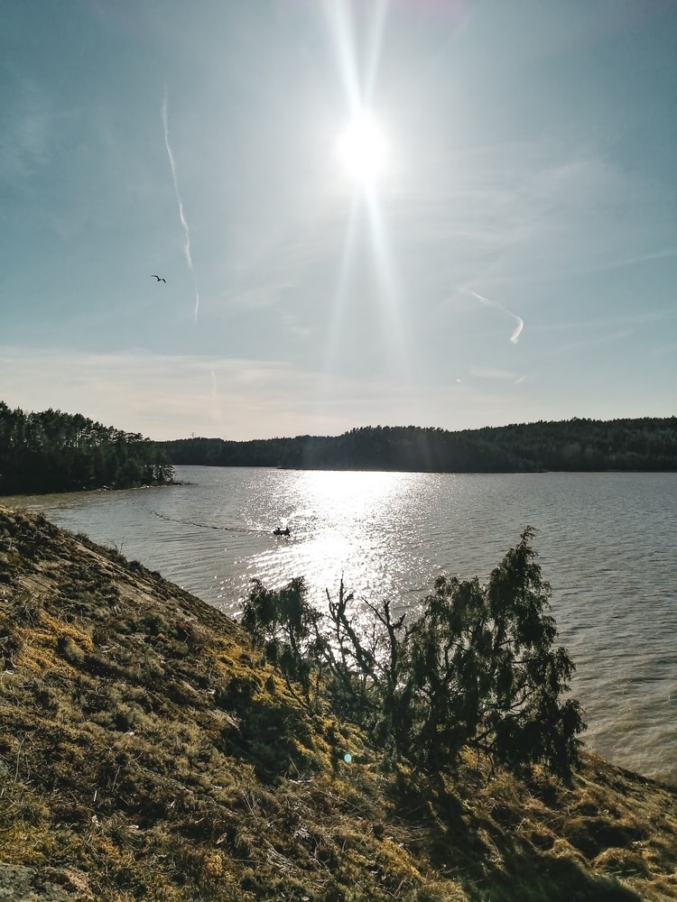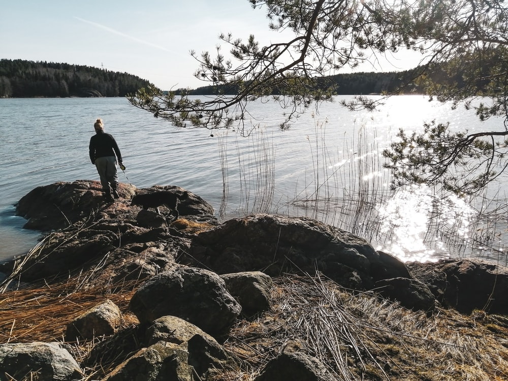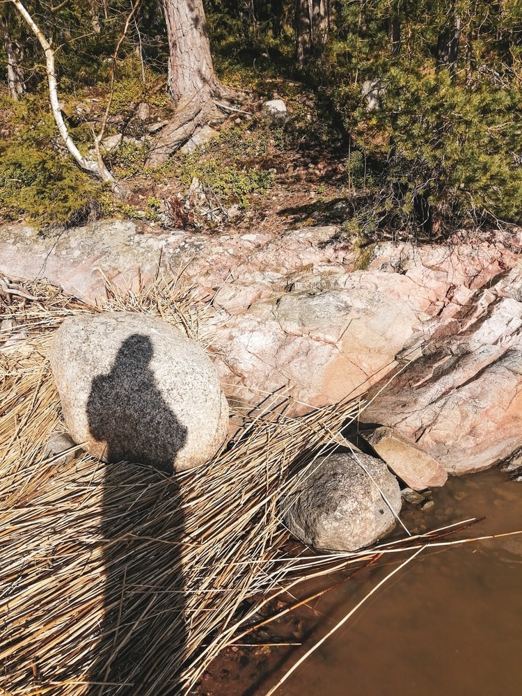 Kävelimme alueella kierroksen, jota en ollut itse ennen kulkenutkaan – olin itse aina vain noussut kalliolle ja palannut samaa reittiä takaisin. Nyt laskeuduimme rantaviivaan, mistä löytyi rauhaisa poukama hiekkarantoineen.
