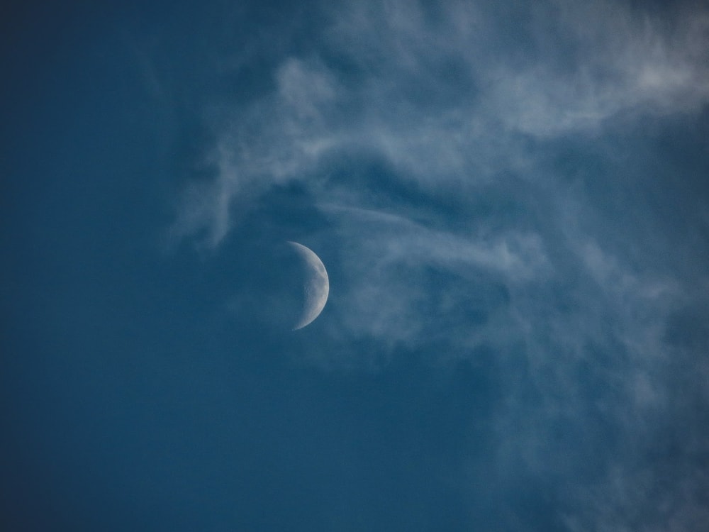 Kuu näyttäytyi eilen vielä kauniina poutapilvien joukossa sinisellä iltataivaalla. Yöttömän yön alkuun ei ole enää kauaa ja onkin mielenkiintoista seurata miltä kuu näyttää kesällä – en ole koskaan sitä Lapin kesässä seuraillut.