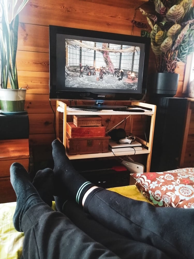 Iltapäivällä miehen herättyä yötyövuoron uniltaan oli aika rauhoittua nauttimaan Nightwishin virtuaalikeikasta Islanders Armsissa. Meillä oli liput sekä perjantain että lauantain keikoille, mutta koska mies oli illat poissa, katsoimme keikat vasta iltapäivisin, jotta saimme katsoa ne yhdessä. Onneksi ne olivat katsottavissa 48 tuntia esityksensä jälkeen.