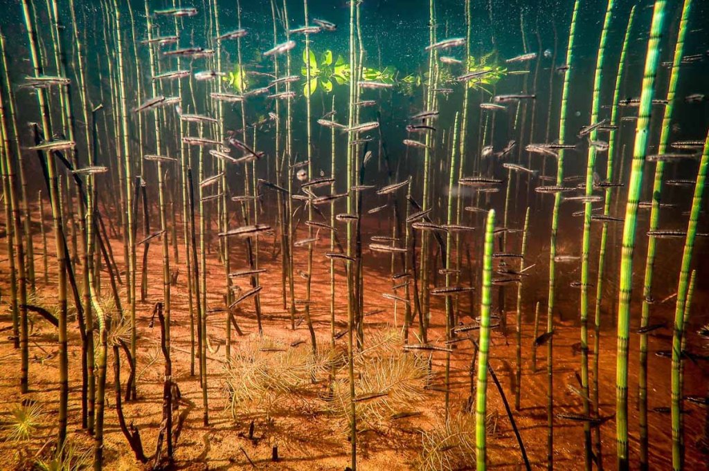 Rannassamme liikkuu alati parvi mutuja, joiden kanssa kuvaamista on hauska harjoitella. Kalat pelästyvät nopeita liikkeitä, mutta kun etenee aivan hitaasti, päästävät ne hyvin lähelle ja saattavat jopa ympäröidä. Aiemmista kokemuksista oppineena tiedän että pikkukalaparvi voi olla kameralle hyvin hämmentävä kohde tarkennettavaksi ja saattaa käydä niin, että automaattitarkennus on lopulta aivan missä tahansa muualla mutta ei kaloissa. Nyt sekin ongelma tuntuu hiljalleen selättyvän.
