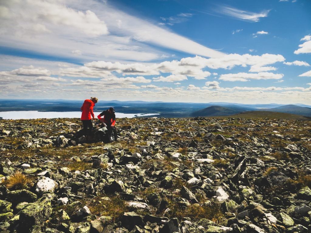 Yhteistä aikaa ystävien kanssa oli oikeastaan vain yksi päivä, joten punnitsimme aamulla tarkkaan että mikä olisi paras tapa sitä viettää. Minä yritin aamiaispöydässä karistella unihiekkaa silmistäni – sitä oli jäänyt sinne kosolti, kun olin herännyt aamulla jo neljän aikaan miehen lähtiessä töihin. Onneksi päivä oli kaunis ja sopivan tuulinen, että saatoimme aika vapaasti valita retkikohteen miettimättä sen enempää sateen uhkaa kuin sääskiäkään. Pulju- ja Pallastunturin väliltä valitsimme tällä kertaa Pallastunturin ja suuntasimme Palkaskeron kierrokselle.