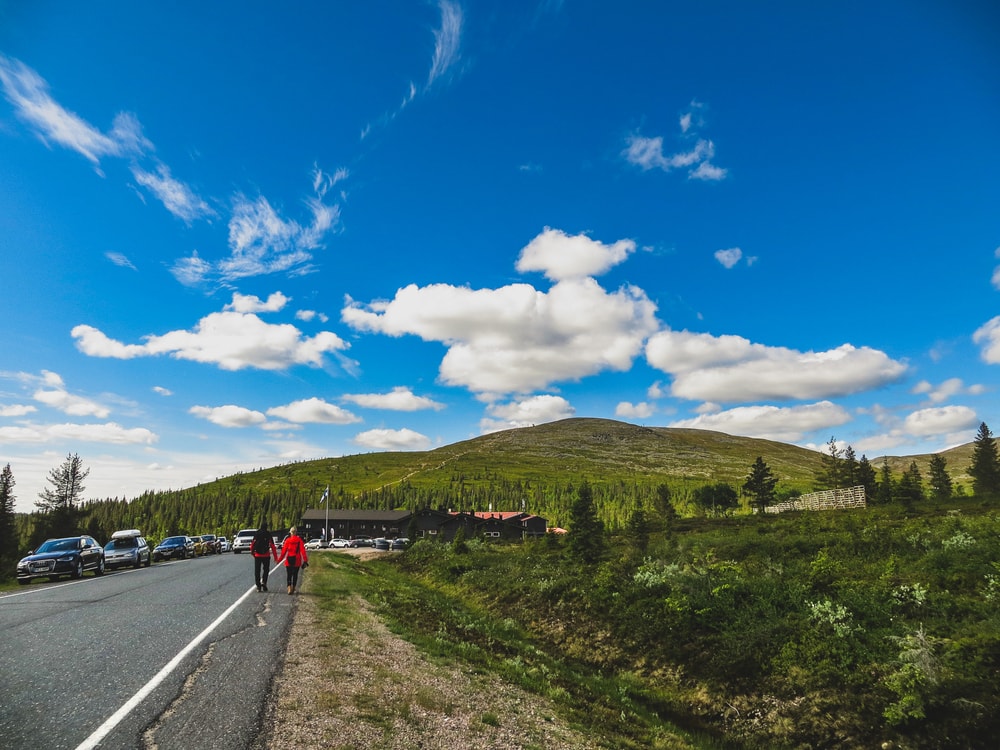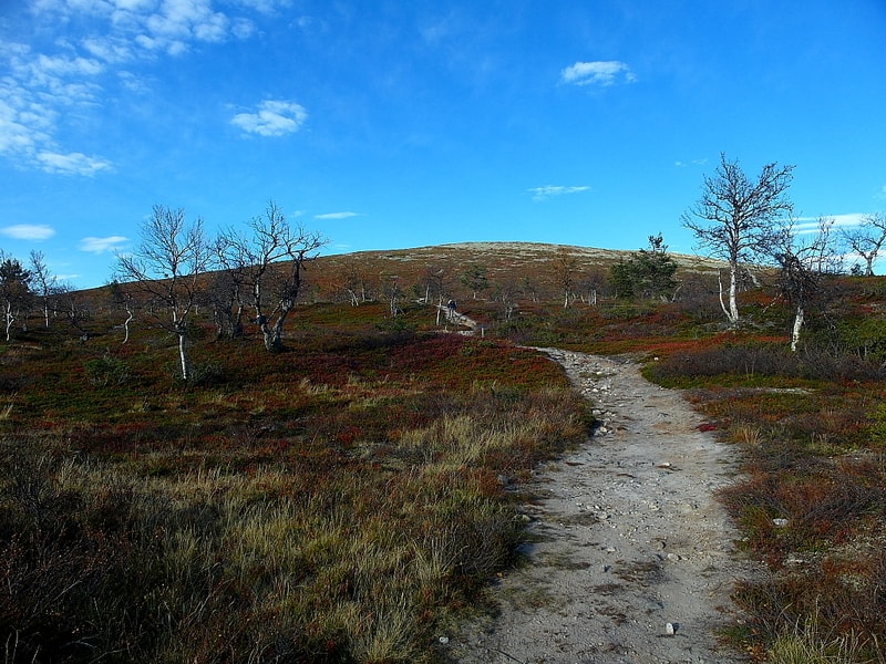 Seitsemän kilometriä pitkä polku nousi pitkän matkaa loivasti ylös. Parkkipaikalla oli aika paljon väkeä, mutta suurin osa ihmisistä näytti suuntaavan Taivaskeron kierrokselle, emmekä me onneksi joutuneet kulkemaan jonossa.