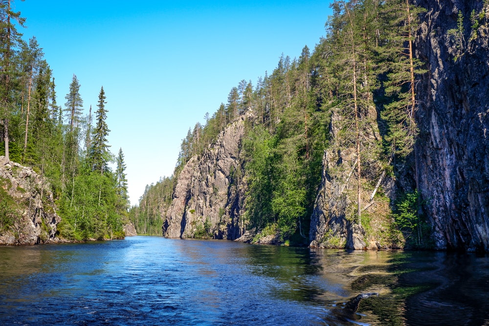 Julma-Ölkky oli todella vaikuttava. Varsinkin hieman ennen takaisin päin kääntymistä järvi kapenee todella jyrkkien vastarantojen väliin ja kalliot kohoavat taivaisiin. Kalliomaalauskin siellä oli, sitä pysähdyttiin katsomaan. Muutenkin veneen kuljettaja kertoili järvestä joitakin asioita.