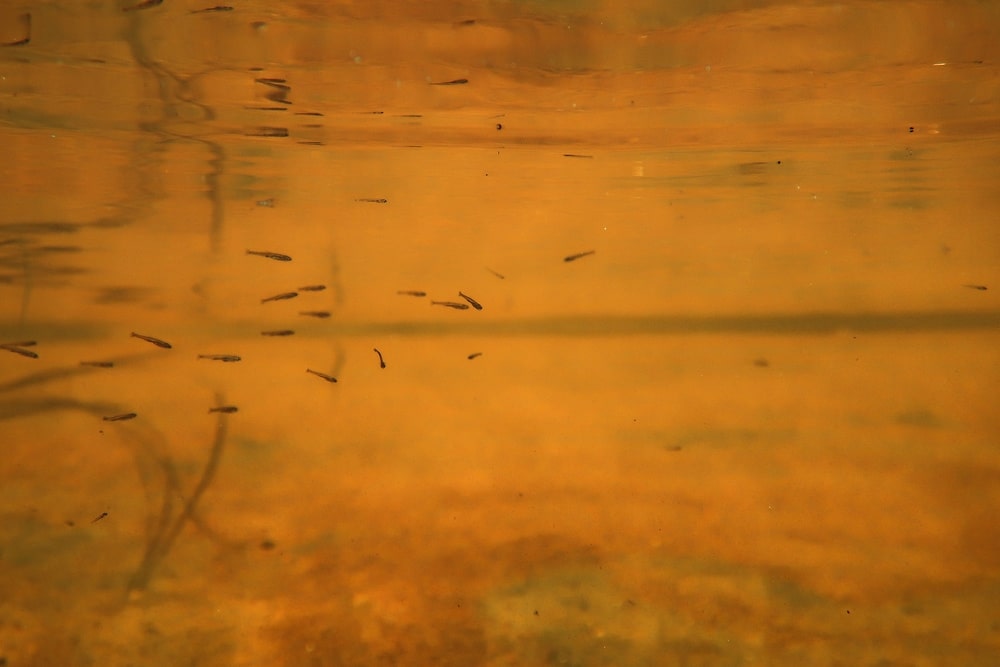 Saari oli niin pieni, että sen ympäri oli uinut nopeasti, vaikka liikuinkin hyvin hitaasti. Aivan rannan tuntumasta löysin parven tooodella pikkiriikkisiä kaloja – olisivatko nuoria mutuja?