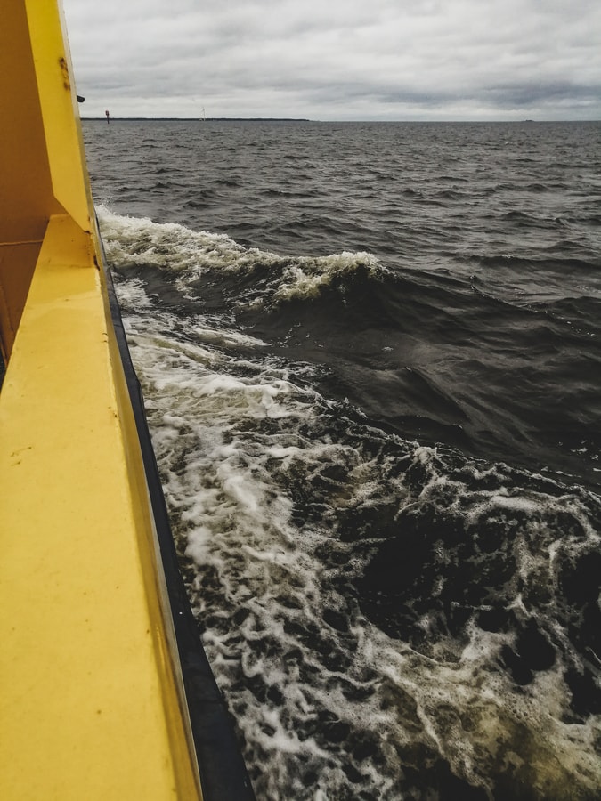 Aamulla satoi rankasti. Haaveeni siitä, että olisimme tulloin vielä tutkineet Hailuodon eri kolkkia, karisivat veden mukana rantahiekkaan. Pakkasimme tavaramme, siivosimme mökin ja ajoimme lauttarantaan. Maanantaiaamun lauttaan oli tulossa paljon etuajo-oikeutettuja, varmasti saarelaisia menossa töihin mantereelle.