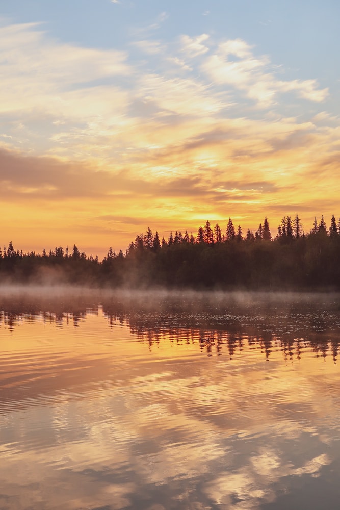 Aurinko kirkastaa maailman nopeasti ja haihduttaa usvat joelta ja soilta. Hetket ennen hurjaa kirkastumista ovat todella tunnelmallisia.