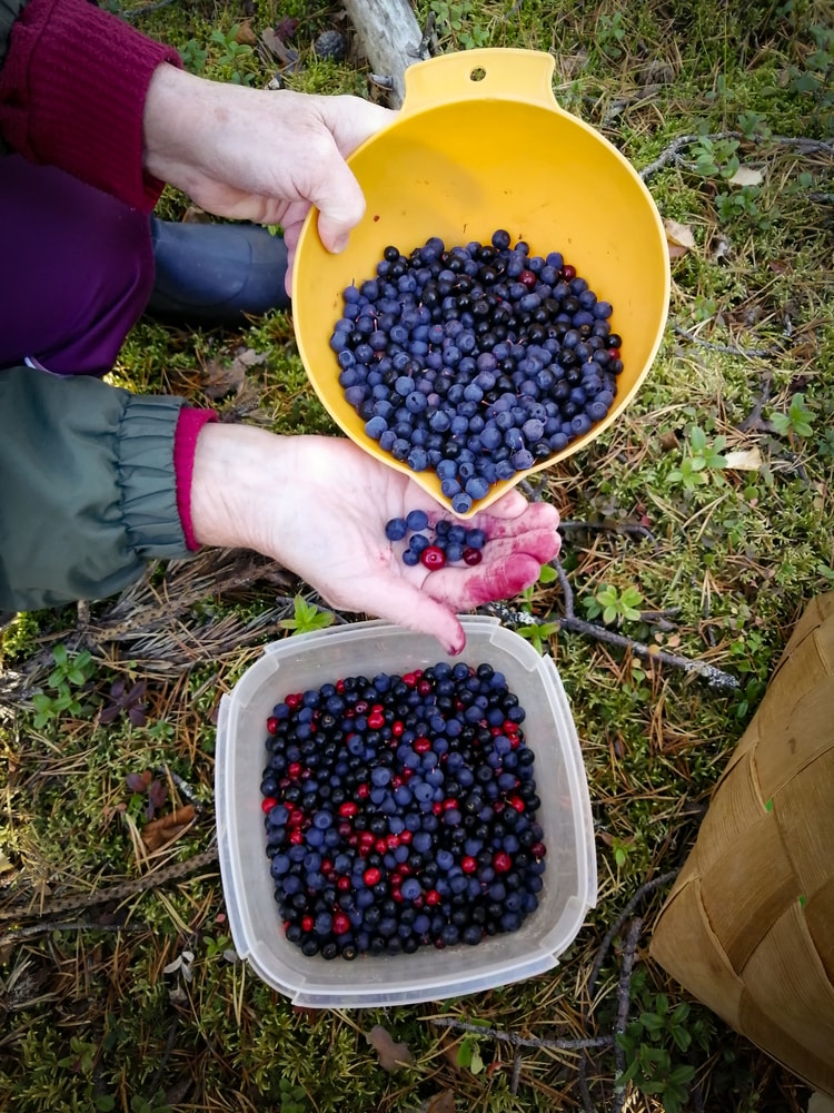 Nyt aion lähteä marjaan, löysin eilen lopultakin paikan jossa kasvaa puolukkaa edes hiukan.