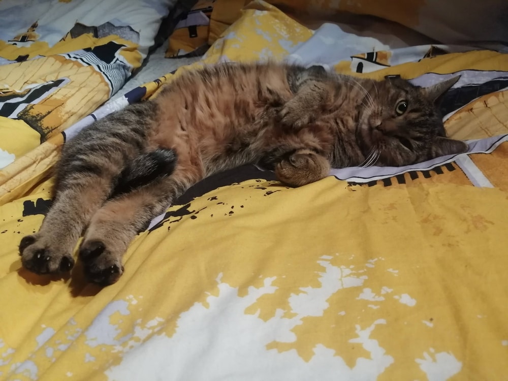Mies tuli hetki sitten yötöistä ja on nyt nukkumassa. Kissa nukkuu kylpyhuoneessa lattialämmityksen päällä. Televisiossa on Avara luonto ja siinä manuleja.