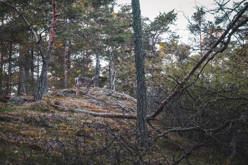 Porkkalanniemelle johtava tie oli pieni ja mutkikas – paikoin niin pieni ja niin mutkikas, että varsinkin vastaantulijoita kohdatessa olin onnellinen, etten ollut ratissa itse. Näimme kaikkiaan varmaan sata valkohäntäkaurista, ja sen lisäksi metsäkauriita sekä täpläkauriita, joita en tiennyt Suomessa edes olevan. Hirvikin näkyi.