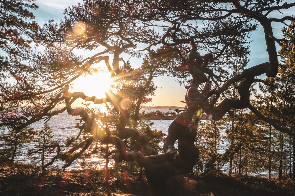 Jätimme auton kauimmaiselle pienelle parkkipaikalle, jossa oli jonkin verran muitakin autoja, mutta maastossa näimme vain satunnaisia ihmisiä. Kuljimme hienon vanhan metsän halki rantakallioille katsomaan laskevaa aurinkoa.