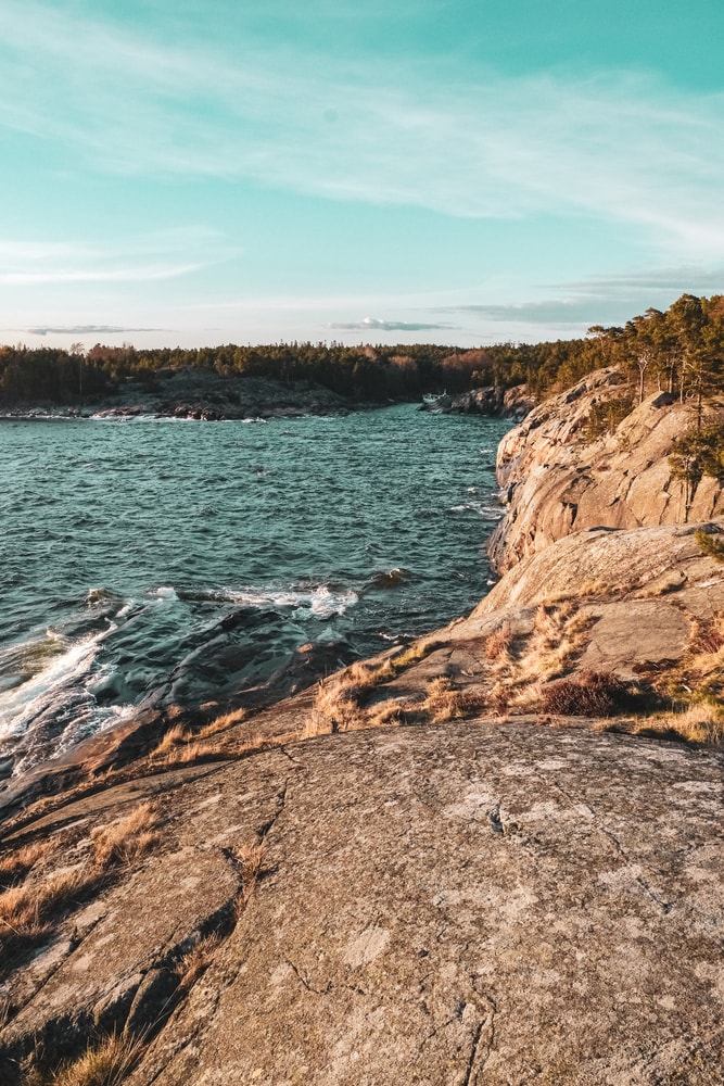 Merituuli tuoksui hyvältä, tutulta, ja kalliot olivat korkeammat kuin mitä olin osannut odottaa. En äkkiseltään muista, milloin olen nähnyt meren viimeksi. Vesi oli kirkasta ja turkoosia, ja aallot pauhasivat valkoisina rannan silokallioita vasten.