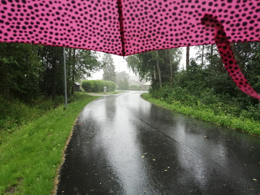 Ajatella, että näin suuria ajatuksia, muistoja ja tunteita syntyi niiden muutamien minuuttien aikana, kun kuljin pinkin sateenvarjon alla kotikylällä kesäisessä kaatosateessa.