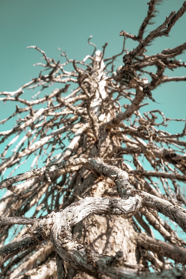 Päätin kuvata kuusta nyt joka kulmasta, jotta saan sen tallennettua itselleni mukaan myös muuten kuin sydämen ja muistojen tasolla. Vanhuus ei tule yksin kelollekaan, joten kuka tietää, missä kunnossa puu on, jos joskus palaan tänne vielä. Halusin ottaa siitä kuvia läheltä ja kaukaa, ikuistaa sen kuivankäppyräiset, mustat ja hopeiset yksityiskohdat sekä maiseman, jossa kuusi seisoo.