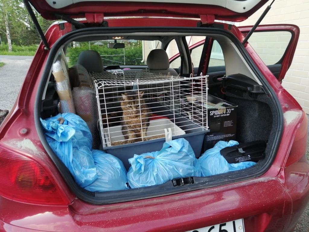 Minulla oli Kiteeltä ostettu Haisuli-reppu selässä ja siellä mm. juuri edellisenä päivänä aloittamani viiden vuoden kalenteri, kuulokkeet, hammasharja, vaihtopaita ja bataatti, jonka kävin pudottamassa Riikan postilaatikkoon matkalla. Joel toi minut Leville, josta bussi Rovaniemelle lähti ennen aamukymmentä. Olimme edellisenä päivänä pakanneet auton ja peräkärryn pullolleen tavaraa ja järjestäneet kissalle häkin, jossa hänellä oli petipaikka ja pellettilaatikko vierekkäin käytettävissä. Joel lähti ajamaan seuraavana aamuna anivarhain kohti etelää.