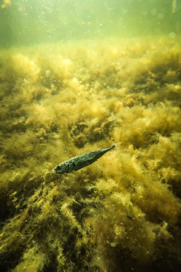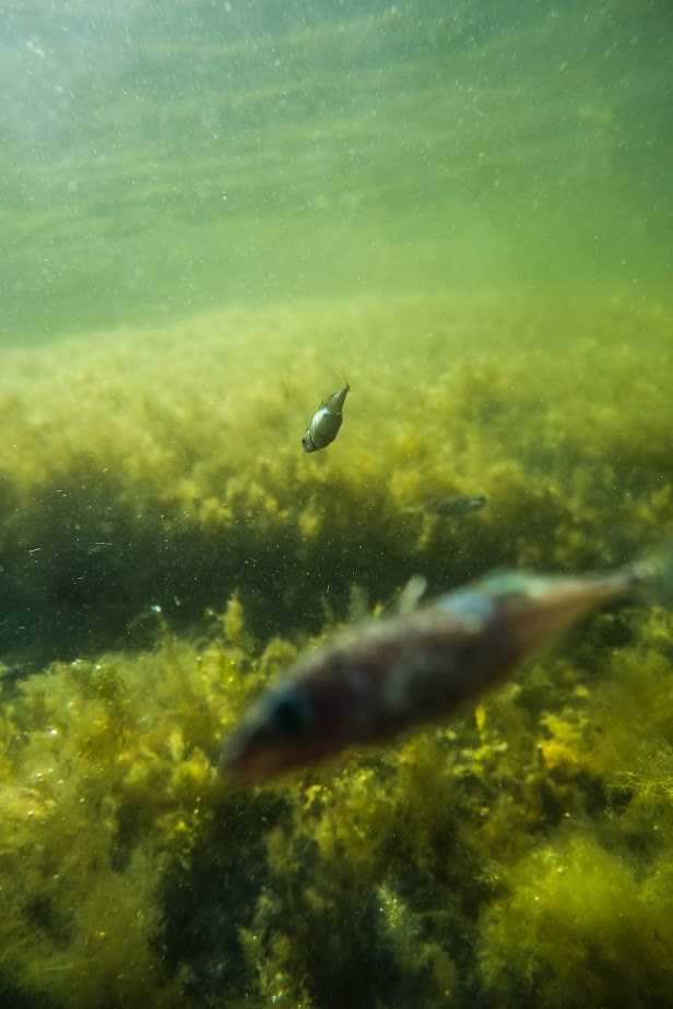 Muutamat kuvat onnistuivat ja sain katsella rauhassa esimerkiksi kalojen ateriointia, kun ne nyppivät levästä jotakin.