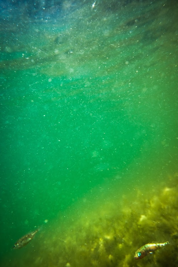 Olimme viettämässä pari yötä Vänön länsipuolella Kemiönsaaren saaristossa. Vesi näytti rannalta katsottuna hyvin kirkkaalta, mutta veteen mentyä se paljastui jonkin verran odotettua sameammaksi. Syykin mahdollisesti paljastui jälkikäteen.