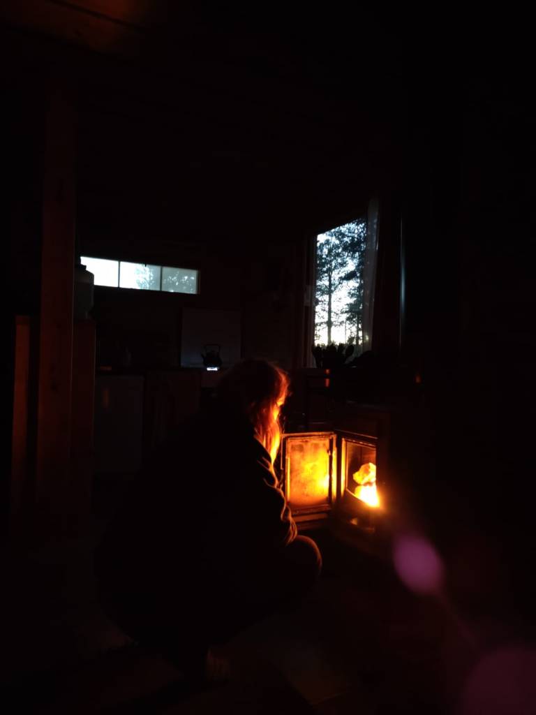 Eilen saimme isän avustuksella puuhellan hereille. Jo kerran aiemmin olimme koittaneet sitä herättää, mutta yritys päättyi savusukellukseen, ehkä ulkona oli liian lämmin silloin vielä. Nyt ilma on viilennyt ja kivitalo myös, ja tunnen kiitollisuutta siitä, että talon joka kerroksessa on tulipesiä ja ennen kaikkea siitä, että liiteri on täynnä pappan aikoinaan tekemiä polttopuita, joita me saamme nyt käyttää. Puuhella onkin ihanin lämmönlähde. Aamulla se on nopea sytyttää ja se antaa äkkiä lämpöä, tuo lempeyttä varhaiseen aamuherätykseen. Hellan lasinen luukku päästää liekkien ihanan valon keittiöön.