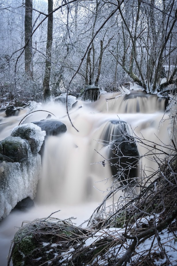 Vanhempien mentyä lähdin vielä kameran ja jalustan kanssa kuvaamaan runsasvetistä koskea, joka oli löytänyt itselleen uomia, joita en ollut tiennyt olevan olemassakaan. Virta oli luonut lukuisia haaraumia ja kiertoteitä etsiessään vedelleen väylää alemmas, vääjäämättömästi kohti merta. Osa uomista, jotka normaalisti kumisevat kuivuuttaan, oli hyvinkin täynnä valkoisena pauhaavaa jokea. Mutta oli myös hienovaraisempia, pienempiä virtoja, jotka lirisivät ja lorisivat piilossa kuntan alla ja tulivat näkyviin vain hieman ennen kohtaa, jossa yhdistyivät takaisin isompiin vesiin. Kuinka kaukaa ne olivat tiensä kaartaneet, sitä ei voinut tietää. Mutta varpaisillaan ne minut pitivät, jokainen askel oli harkittava huolellisesti ja oli luettava maata niin, ettei sen alla virtaava vesi pääsisi yllättämään.