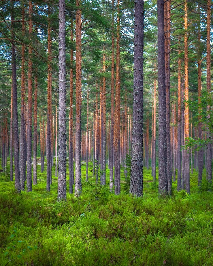 Vanhojen mäntyjen, joista osa oli jo ehättänyt kasvattaa hienon kilpikaarnan, lomitse kulkiessamme saimme luovia askeleemme tarkasti, sillä kallio ja kivet tekivät alustasta varsin kolmiulotteisen. Välillä piti laskeutua alas ja sitten taas nousta ylös käsillä kalliosta tai puista tukea ottaen. Jokainen puu oli eri muotoinen, osa oli jo kelottunut kokonaan tai osittain, jotkut pötköttelivät pitkin pituuttaan uhkeiden poronjäkälämattojen pehmeydessä. Mikä ihana paikka saada rauhassa maatua!