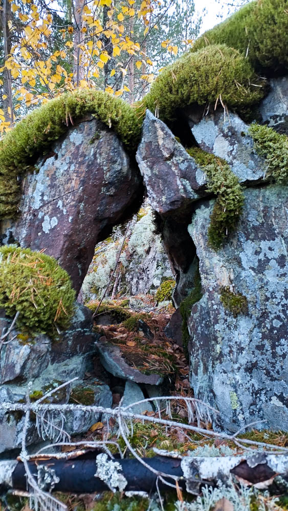 Löysin muutamia hienoja kivi- ja kalliomuodostelmia. Alla niistä yksi, ja toisessa oli kallio muodostanut kuin jonkinlaisen kaarevan valtaistuimen tai poteron, yli metrin korkuisen kivikainalon.