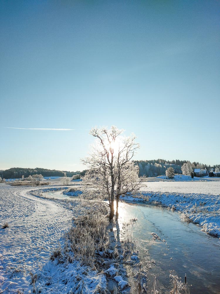 Kosteus ja pakkanen olivat luoneet hankikannon ehkä viitisen tai kymmenen senttiä paksulle lumikerrokselle. Kosken lähellä kaarsin tieltä pois pienen talon kokoisiin pajupensaisiin kauriinjälkiä seuraten.