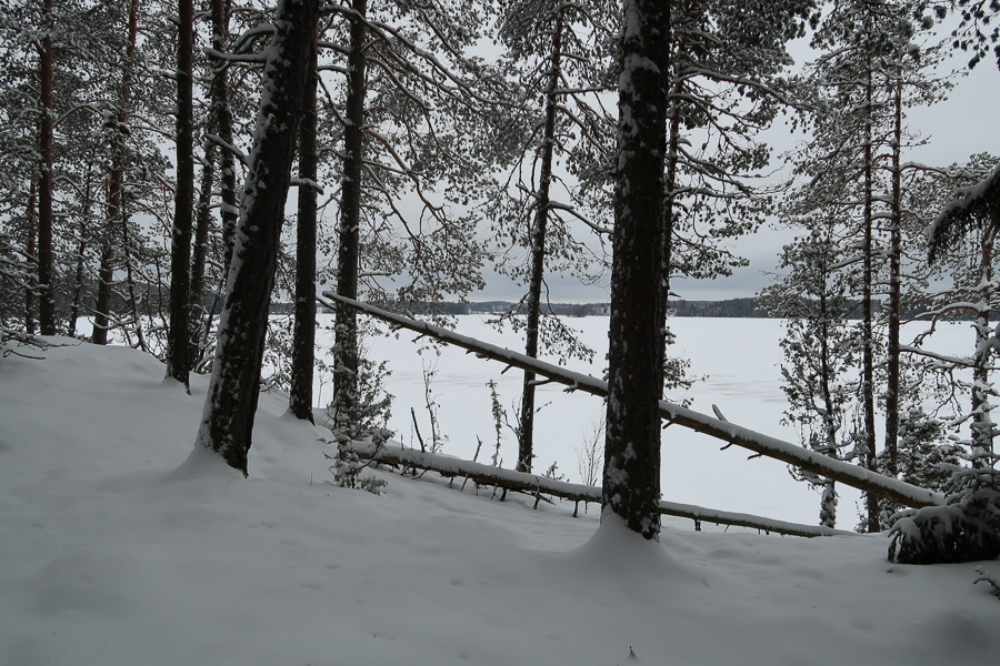 Lunta on paljon. Täkäläisittäin. Mutta ei niin paljon, että se olisi tehnyt kävelystä vaikeaa – kulku oli helppoa kaikkialla muualla paitsi lyhyillä pitkospätkillä, joissa lumi oli piilottanut lankut niin, että harha-askel tapahtui herkästi ja syvälle notkolla olevaan maahan. Muistelin miltä tuntuu, kun lunta on polveen tai puoleen reiteen saakka. Nautin siitä, että vaikka onkin runsaasti lunta täkäläisellä, nykyaikaisella mittapuulla, saatoin silti kävellä metsässä tuosta noin vain, kevyellä askelella, vaivatta, rämpimättä, ilman tarvetta lumikengille.