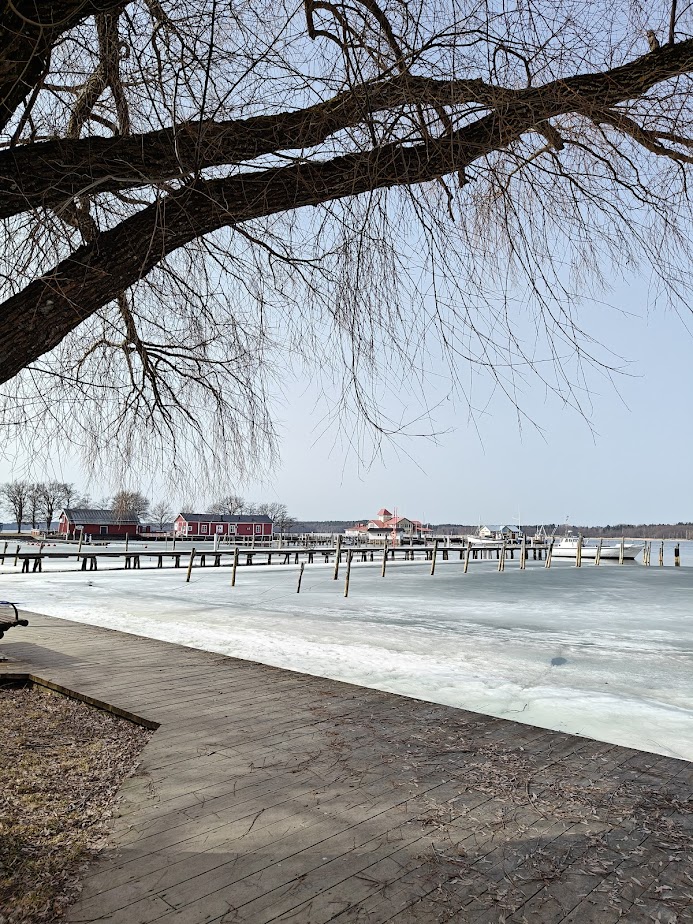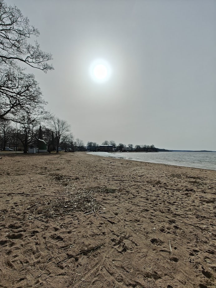 Jätimme auton Fyranin eteen ja kävimme sisällä kahvilla. Katselimme suurista ikkunoista sulaa merta ja sen pinnalla kelluvia kauniita, persoonallisia paatteja. Kuljeskelimme satamassa ja etsimme merkkejä siitä, lähtisikö Jussarö-risteily kesällä siitä jostakin – emme kuitenkaan löytäneet asiasta mainintaa. Kuljimme hiekkarannan poikki ja katselimme sorsia ja lokkeja, nuuhkimme merta ja hiekkaa, jolle oli huuhtoutunut mereltä kaisloja ja levää. Aurinko paistoi ihanasti ja kurkiaura halkoi taivasta. Tammisaari oli ollut nappivalinta.