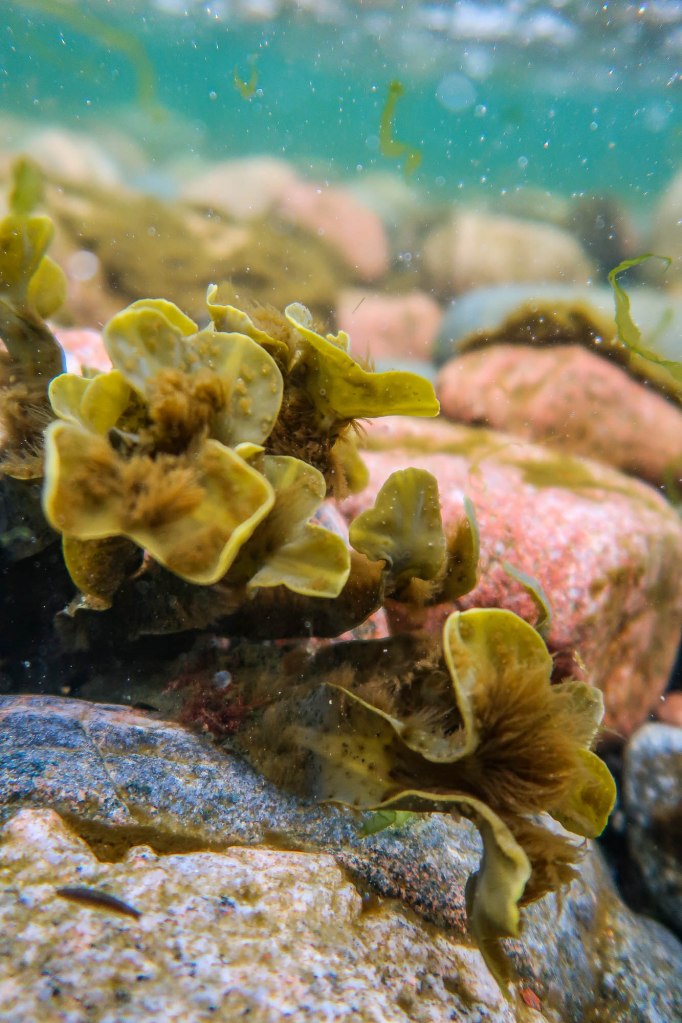 Vesi oli jääkylmää ja sormia särki, mutta pääsin ottamaan ensimmäiset kuvat veden alta Jurmosta. Aallot eivät olleet suuren suuria, mutta onnistuivat kuitenkin tarttumaan sukelluskoteloon ja kameran aloillaan pitäminen oli vaikeaa. Päätin palata puuhan ääreen hieman myöhemmin ja etsiä suojaisamman rannan.