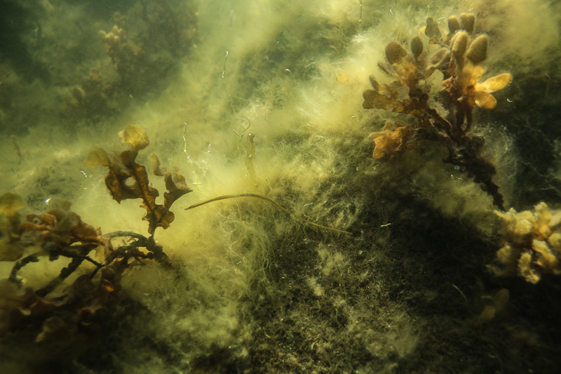 Alla vielä sellainen kuva siloneulasta, jota en tiennyt edes ottaneeni – vasta editissä huomasin kalan pään kurkottavan esiin rakkolevän keskeltä.