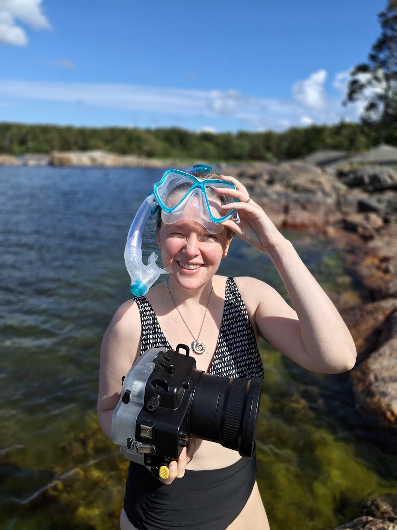 Vedessä tuli vietettyä hyvän aikaa. Kuten yleensäkään, en ottanut aikaa enkä tiedä veden lämpötilaa. Ihana siellä oli kelluskella laiskasti menemään. Ja tämä oli oikein ylellinen ranta siinä mielessä, että oli ihan oikea uimakoppi missä riisua ja pukea. Ehdottomasti aion palata tälle rannalle joskus. Fakta on, että Hanko on lähin ja helpoin sellainen kohde minulle, missä pääsen snorklaamaan edes jotakuinkin kirkkaaseen meriveteen.