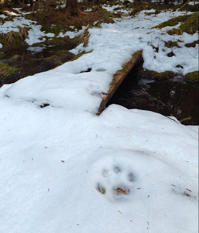 Ilveksen tassunjäljen löysin viime vuonna lumelta, ja se oli todella vaikuttava löytö. On kunnia saada liikkua villieläinten mailla, ja ehdottomasti koen asian juuri niin päin – metsässä liikun heidän maillaan. Eikä minulla ole mitään sitäkään vastaan, että he joskus näyttäytyvätkin. Peltoja on täällä laajalti, ja siellä eläimet väkisinkin näkyvät kauas. Teitä menee kaikkialla, ja joskus ne on eläimenkin ylitettävä. Metsät ovat pirstaloituneet, ja nuoret eläimet hakevat paikkaansa ja elämänkokemusta tullen joskus ns. ihmisten ilmoille. En itsekään ollut kovin järkevä ja viisas nuorena, joten minun on helppo samaistua vaikkapa kylillä toilaileviin susinuoriin, jotka koittavat vain pärjätä jotenkin elämässä eteenpäin, kuten me kaikki. Sitä paitsi lähes kaikki paikathan nykyään ovat ’ihmisten ilmoja’ – ei täällä etelässä enää mitään oikeaa erämaata ole. Joka paikassa joku asuu tai vähintään mökkeilee tai pitää lampaitaan. Olen ylpeä, että myös suurpedot mahtuvat tänne – Luonnonvarakeskuksen kartan mukaan lähes koko Suur-Salon alue keskustaa lukuun ottamatta kuuluu jonkin susilauman reviiriin.