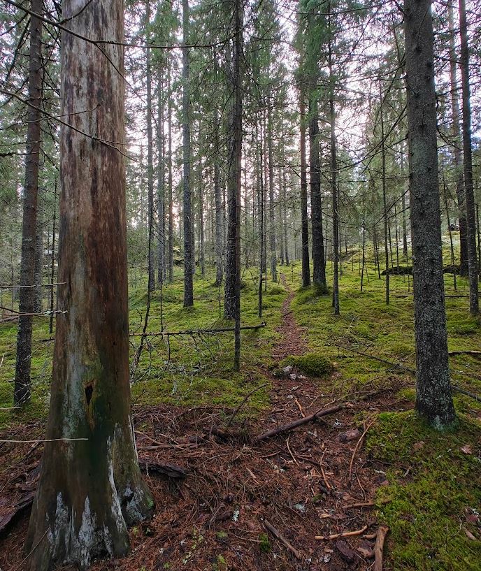 En ollut näilläkään sijoilla ensimmäistä kertaa. Olen liikkunut täällä useasti ennekin, joten karttaa ei tarvinnut vilkuilla, tiesin hyvin mistä olen tulossa ja mihin olen menossa. Ylitin tien, jonka metsä oli nielaissut jo lähes kokonaan – sitä ei näkynyt enää kartallakaan, ja sen pinta puski sammalta, heinää ja kuusia.