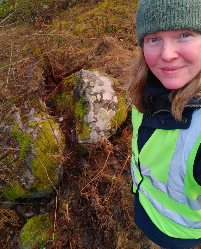 Saavuin tutun jättiläiskuusen ja sen takana kohoavan kallioseinämän luo. Tuo kalliomäki on yksi suosikeistani, sen kantaa todella kaunista ja koskematonta luontoa harteillaan. Nyt kuitenkaan en noussut sinne, sillä se olisi vienyt minut väärään suuntaan. Sen sijaan vietin kuusen alla hetken aikaa, koska luulin kuulleeni ihmisten ääniä ja halusin olla aloillani hetken varmistaakseni, ettei ketään ole missään, ja lähdin sitten seuraamaan kallion eheää, pystysuoraa seinää oikeaan suuntaan.