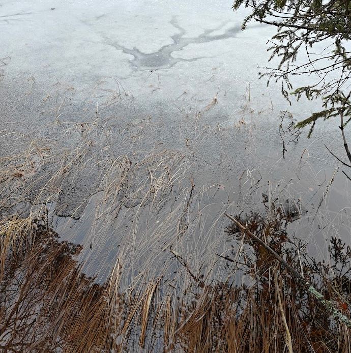 Seurasin puroa ylös järvelle ja hörppäsin järven rannalla muutaman kulauksen vettä. Järvi oli jäässä ja hiljainen. Jään pinnassa näkyi tummia uveavantoja, pyöreitä tummia läikkiä, joista lähtee oksiston muotoisia haaroja – kokonaisuudessaan näky on hermosolun muotoinen.