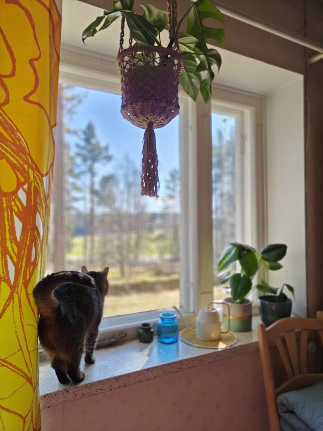 Lehdet ovat juuri puhkeamassa tuomiin ja koivuihin. Parin viikon ajan olemme olleet kodinomistajia – äidin lapsuudenkoti, jossa olemme nyt jo asuneet loppukesästä 2022 alkaen, siirtyi meidän omistukseemme kuun alkupuolella. Kauppa toi mukanaan paljon iloa ja huojennusta, sillä olemme vuosien varrella kiintyneet ja kotiutuneet tähän paikkaan niin, että olisi ollut suru lähteä täältä ja muuttaa johonkin sellaiseen taloon, jota emme tunne ja jolla ei ole meille ennalta mitään merkitystä tai tunnearvoa. Tuntuu kunnialta saada tämä paikka itselle. Minulle tämä on mummola, vaikka ei tätä koskaan mummolaksi kutsuttu – tulimme aina mamman ja pappan luo.